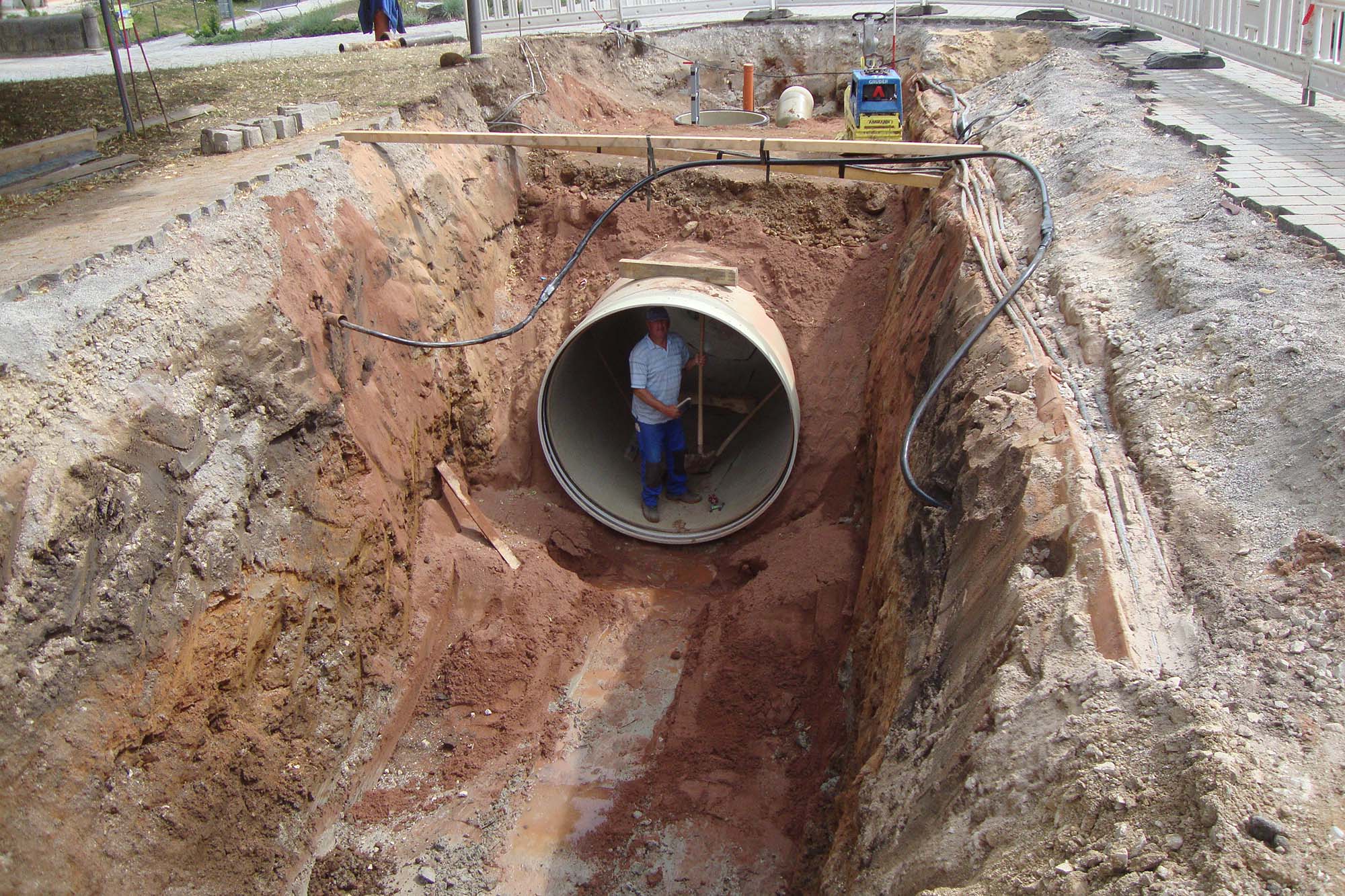 Wir erstellen Kanäle zur Ver- und Entsorgung in allen Dimensionen. Gerade in diesem Bereich kommt es darauf an, dass alle Leistungen optimal ineinandergreifen. Wir bieten Ihnen deshalb eine Baulösung mit allen Komponenten aus einer Hand – eine effiziente und termingerechte Ausführung ist Ihnen damit sicher. Unterschiedlichste Bauvorhaben – von der konventionellen Kanalauswechslung bis hin zur kompletten Neuerschließung – werden von uns durchgeführt. Im Kanalbau sind wir Güteschutz Kanalbau zertifiziert nach AK 2.
